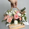 Эта уникальная композиция цветов, представленная в изящной коробочке - настоящая эссенция весны. Кустовые розы, кустовые хризантемы и кустовые гвоздики сочетаются в неповторимом танце цветов и ароматов. Их нежные лепестки создают впечатление нежности и изысканности, наполняя воздух легким ароматом. Композиция олицетворяет прекрасное пробуждение природы после зимней спячки и приносит в дом свежесть и энергию весны. Она станет прекрасным подарком для любого случая и украсит интерьер, добавив в него нотку радости и красоты.